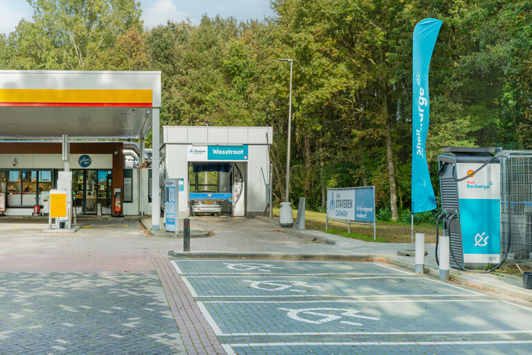 Van Staveren Shell Recharge in Dronten biedt twee 150kW laadpalen. Met twee stekkers per laadpaal kunnen hier vier EV tegelijk laden.